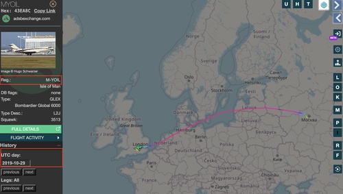 Там же был самолет Игоря Сечина с бортовым номеров M-YOIL.