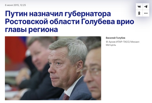 А еще через 10 лет происходит самое важное событие в судьбе любого единоросса — больше никаких «вице» и «замов», теперь он целый губернатор. Правда, от далекой от Подмосковья Ростовской области.