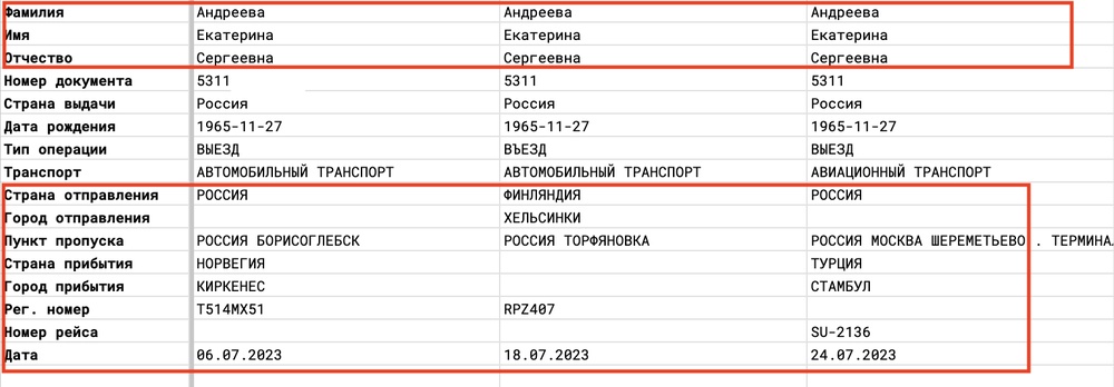 Мы специально выбрали полгода именно военного времени — 2023 год. Одна из главных российских пропагандисток просто берёт и, как ни в чём не бывало, выезжает по наземной границе из России в Норвегию и Финляндию. К этому моменту Норвегия уже год как не выдавала россиянам туристические визы, а Финляндия уже год как не пускала россиян по туристическим визам — ведь все они виноваты в войне гораздо больше, чем Екатерина Андреева. В чём секрет успешного пересечения Андреевой европейских границ узнаете чуть ниже.