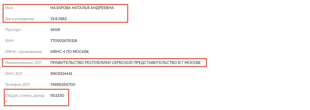Представительством Республики Сербской в России Перович вообще пользуется как своей личной собственностью. Мы обнаружили, что среди тех, кому платит это представительство числится живущая в Латвии дочь Екатерины Андреевой, Наталья. Она там непонятно за что получила почти миллион рублей в 2022 году.