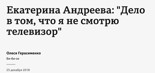 А альтернатива была. Она была в любой момент, когда вам из телевизора вам доказывали противоположное. Она была на улицах, на выборах, на страницах уже уничтоженных независимых СМИ, просто про это вам Екатерина Андреева не рассказывала. И сейчас, каким бы безнадежным вам не казалось наше время, она тоже есть. Сейчас кажется, что Путин и Андреева — это навсегда, но так просто не бывает. В России обязательно наступит день когда словосочетание «федеральный телеканал» перестанет быть синонимом тотального вранья. Когда с экранов телевизоров мы услышим то, что сегодня невозможно представить. Когда в бюллетенях появятся имена тех, кто действительно заслуживает этого. День, когда закончится война, а Россия вырвется из лап тех, кто ее пытается уничтожить.