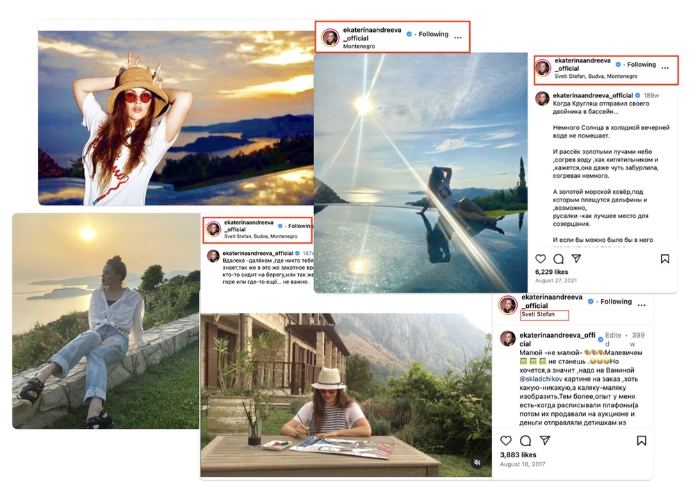 Чтобы понять, где Екатерина Андреева проводит значительную часть времени, достаточно просто внимательно полистать ее инстаграм. Много лет подряд она выкладывает живописные виды одной европейской страны — Черногории.