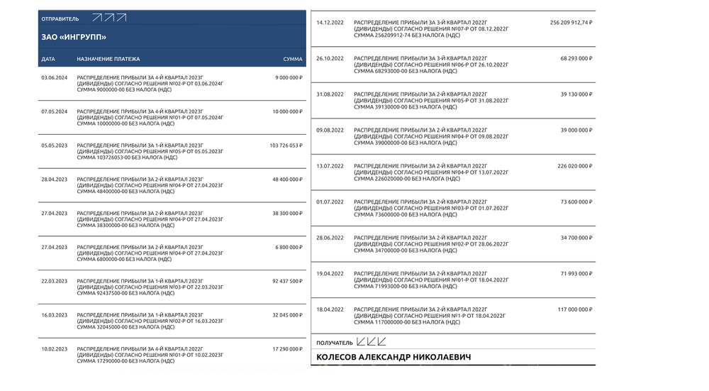Ингрупп выплатило 1,25 миллиарда Александру Колесову, старшему сыну Николая Колесова.