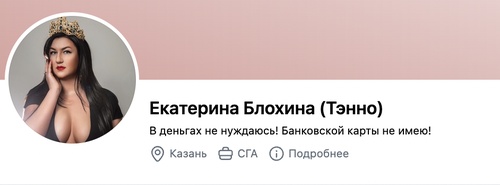 На свой страничке в ВК она пишет в статусе, что не нуждается в деньгах. Охотно верим!