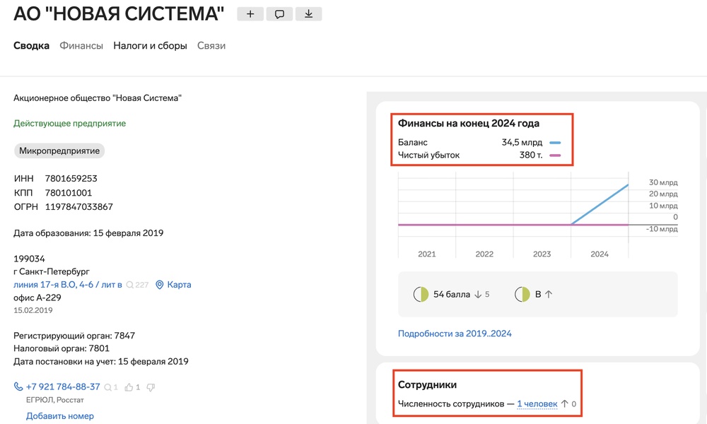 Фирма «Новая система» находится в Санкт-Петербурге, в ней работает один человек, никакого бизнеса не ведет, в бухгалтерской отчетности каждый год только убытки.