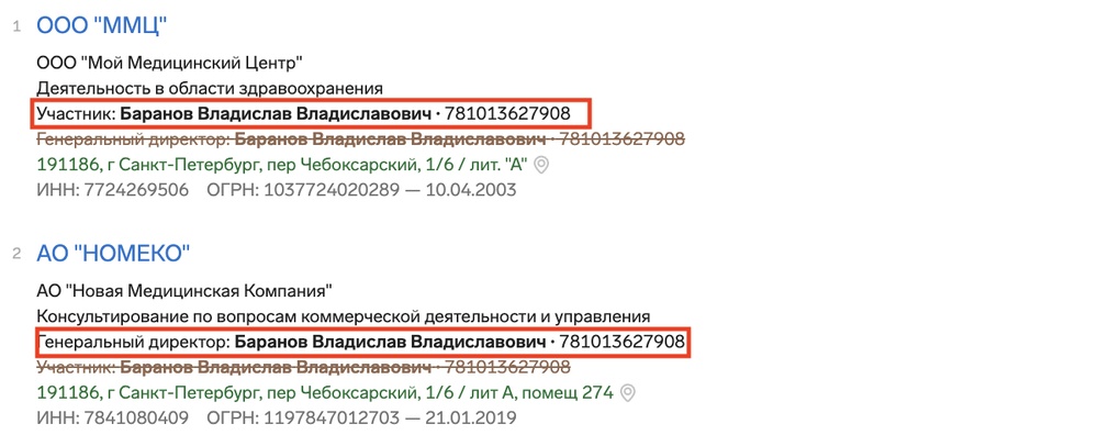 Это клиника записана на четырех несвязанных с Тимченко людей, врачей и менеджеров этого самого ММЦ. А вот с кем формальные владельцы ММЦ связаны так это с Марией Воронцовой, дочерью Путина. Они выступают учредителями в другом ее бизнесе — медицинской компании НОМЕКО.