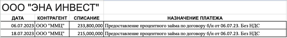 Открываем их банковские проводки «Новая Системы» и видим, что за 2 минуты (!) до того, как они отправили эту гигантскую сумму «ВГ Инвесту», они их получили в виде беспроцентного займа от еще одной фирмы из Санкт-Петербурга — «Эна Инвест».