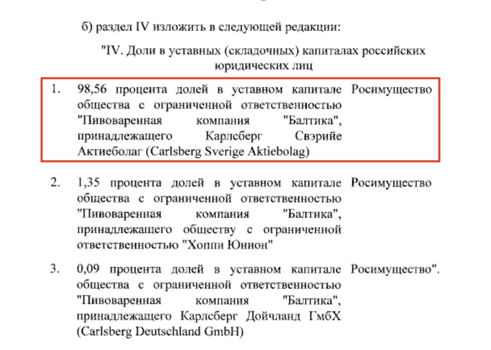 Через пару недель после объявления о сделке, вдруг выходит указ Путина о том, что все имущество Карлсберг в России, все акции, «Балтика» в том числе, переходят под управления государства.
