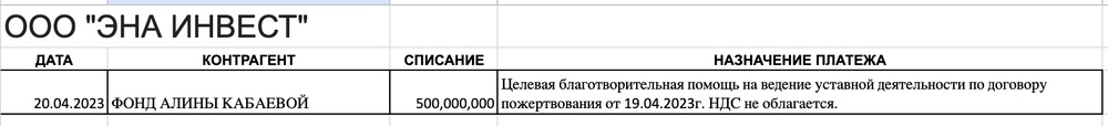 Вот, например, «Эна Инвест», которая оплатила покупку «Балтики» и вроде как принадлежит Геннадию Тимченко, в 2023 году переводит 500 млн рублей в Фонд Алины Кабаевой.