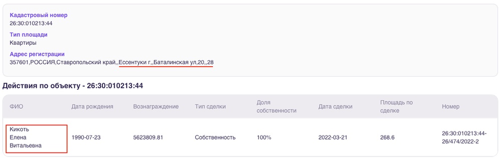И прошлая владелица — ещё одна женщина с фамилией Кикоть.